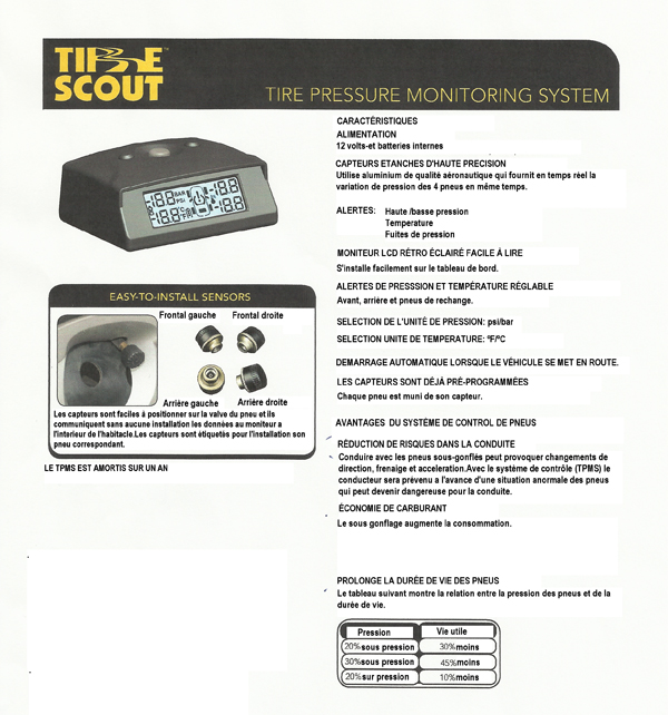 Système de surveillance de la pression des pneus - Whistler TS-104